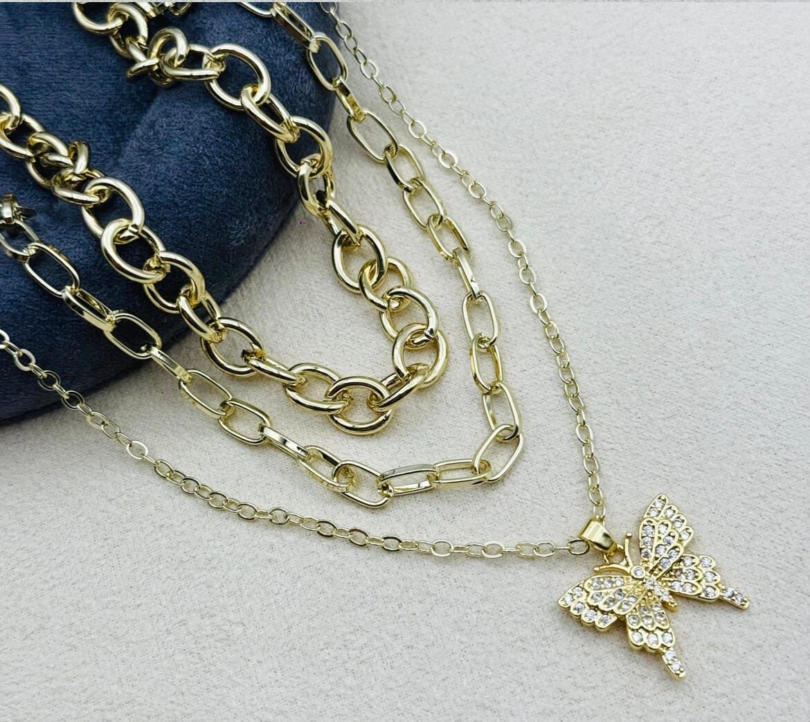 Xuping Model Vip Çelik Zirkon Taşlı Kelebek 3'lü Set Kolye